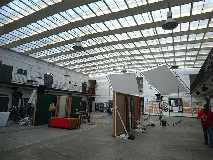 Fot. Elewacja budynku.Fot. Dziedziniec wewnętrzny budynku Warszawskiej Szkoły Filmowej