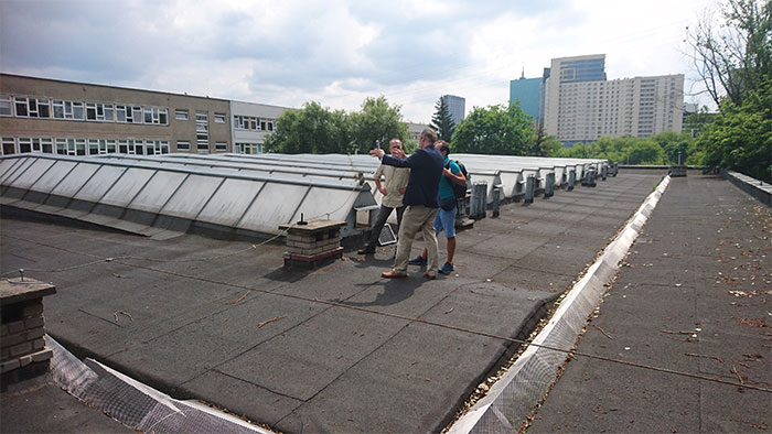 Fot. Oględziny i badania dachu budynku W.S.F, wybór lokalizacji centrali wentylacyjnej.